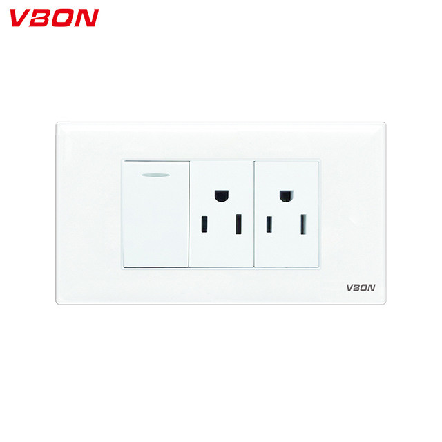 B61-09 16A 1 gang 1 way switch + 2 x US socket